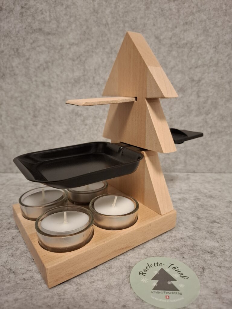 Die Raclette-Tännli werden von Hand gefertigt und sind deshalb Unikate. Im Moment verwenden wir Buchen- und Eichenholz (wir werden noch mit weiteren Holzarten experimentieren).